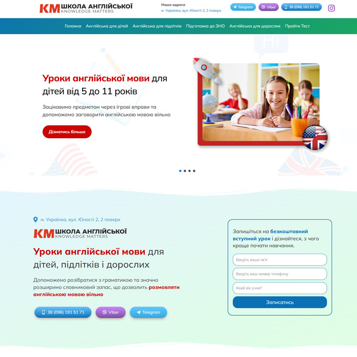 Сайт правильно відображається на моніторах, ноутбуках, планшетах, смартфонах.